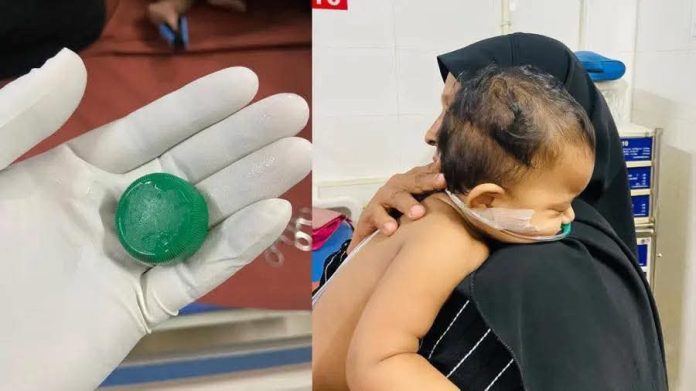 അതീവ ശ്രദ്ധയോടെയുള്ള നീണ്ട പരിശ്രമത്തിനൊടുവിൽ കുപ്പിയുടെ മൂടി തൊണ്ടയിൽ നിന്നും പുറത്തെടുത്തതോടെയാണ് കുരുന്നിന്റെ ശ്വാസം നേരെ വീണത്. കൃത്യസമയത്ത് ആശുപത്രിയിൽ എത്തിക്കാൻ കഴിഞ്ഞതാണ് കുഞ്ഞിന്റെ ജീവൻ രക്ഷിക്കായതെന്ന് ഡോക്ടർമാർ വ്യക്തമാക്കി. ചെറിയ കുട്ടികളുടെ കൈകളിൽ അവരുടെ വായിൽ കൊള്ളുന്ന തരത്തിലുള്ള ചെറിയ കളിപ്പാട്ടങ്ങളോ മറ്റ് വസ്തുക്കളോ യാതൊരു കാരണവശാലും നൽകരുതെന്ന് ഡോ. ഷാനവാസ് കർശന മുന്നറിയിപ്പും നൽകി.കേരളത്തിലെ പൊതുജനാരോഗ്യ സംവിധാനത്തെ ഇകഴ്ത്തിക്കാണിക്കാൻ ചിലർ ശ്രമിക്കുന്ന കാലത്ത് മനുഷ്യജീവൻ മുൻനിർത്തിയ സേവനമാണ് മറുപടി എന്ന് വീണ്ടും തെളിയിച്ചിരിക്കുകയാണ് മഞ്ചേരി ഗവ. മെഡിക്കൽ കോളേജിലെ ആരോഗ്യപ്രവർത്തകർ.
