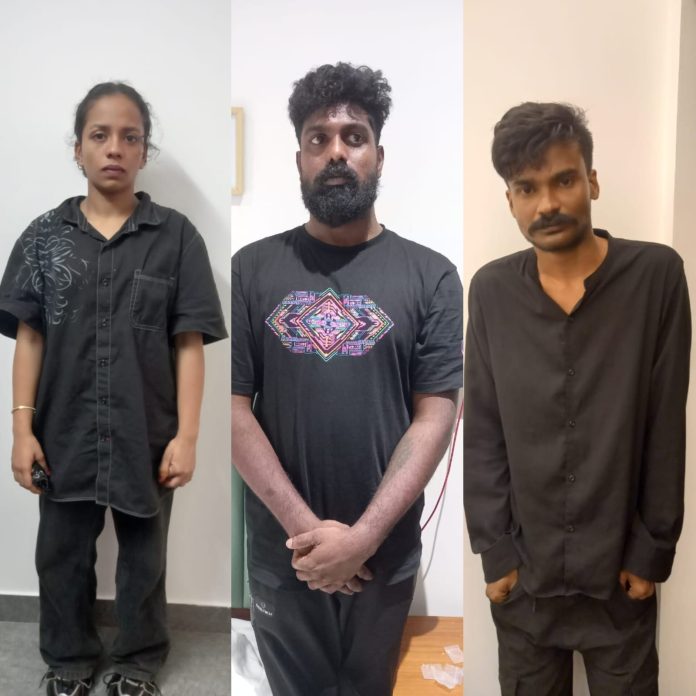 കോഴിക്കോട് ഇരിങ്ങാടം പള്ളിയിലേ സ്വകാര്യ ലോഡ്ജിൽ നിന്നാണ് ബേപ്പൂർ സ്വദേശി അമൽ കുമാർ (30), പയ്യാനക്കൽ സ്വദേശി ഷാഹുൽ ഹമീദ് (25), പേരാമ്പ്ര സ്വദേശി കാമ്യക റീജു (21) എന്നിവരെ നാർക്കോട്ടിക് സെൽ അസിസ്റ്റൻറ് കമ്മീഷണർ ജോൺസൺ എ ജെയുടെ നേതൃത്വത്തിലുള്ള ഡാൻസാഫും ചേവായൂർ പോലീസും ചേർന്ന് പിടികൂടിയത് . വിൽപ്പനയ്ക്കായി കരുതിയ 108.28 ഗ്രാം എം. ഡി എം എ ആണ് പ്രതികളിൽ നിന്ന് കണ്ടെടുത്തത്..