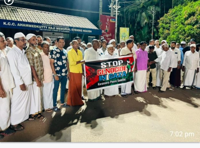 മുക്കം: ഗസ്സയിൽ ഇസ്രായേൽ ഭരണകൂടം നടത്തുന്ന ക്രൂരമായ വംശഹത്യയ്ക്കെതിരെ കാരശ്ശേരി പൗരാവലിയുടെ നേതൃത്വത്തിൽ സംഘടിപ്പിച്ച ഗസ്സ ഐക്യദാർഢ്യ റാലി ശക്തമായ മനുഷ്യാവകാശ സന്ദേശമായി. ജാതി, മത, രാഷ്ട്രീയ ഭേദമന്യേ എല്ലാ വിഭാഗങ്ങളിലെയും ജനങ്ങൾ പങ്കെടുത്ത റാലിയിൽ ഗസ്സയിലെ നിരപരാധികളായ ജനതയോടുള്ള അനുഭാവവും ഐക്യദാർഢ്യവും പ്രകടിപ്പിച്ചു.