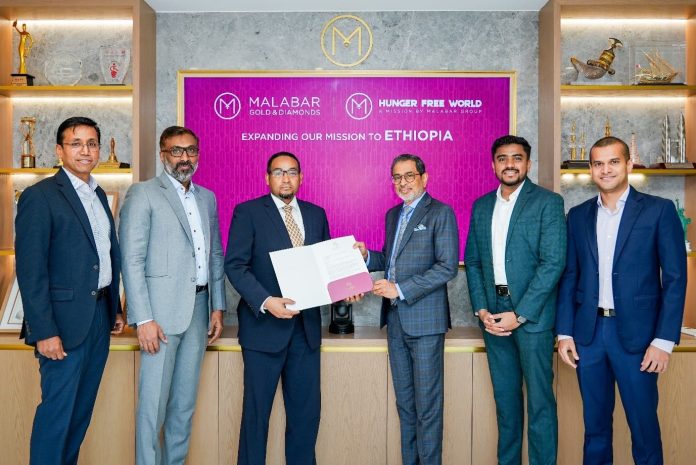 കൊച്ചി: ലോകത്തിലെ അഞ്ചാമത്തെ വലിയ ജ്വവലറി ഗ്രൂപ്പും സിഎസ്ആര്‍ മേഖലയില്‍ ഇന്ത്യയിലെ മുന്‍നിരക്കാരുമായ മലബാര്‍ ഗോള്‍ഡ് ആന്റ് ഡയമണ്ട്‌സിന്റെ ഹംഗര്‍ ഫ്രീ വേള്‍ഡ് കാമ്പയിന്‍ എത്യോപ്യയിലേക്കും വ്യാപിപ്പിക്കുന്നു. ദുബായ് ഗോള്‍ഡ് സൂക്കിലെ മലബാര്‍ ഇന്റര്‍നാഷണല്‍ ഹബ്ബില്‍ നടന്ന ചടങ്ങില്‍ മലബാര്‍ ഗ്രൂപ്പ് വൈസ് ചെയര്‍മാന്‍ അബ്ദുള്‍ സലാം കെ.പി. ദുബായിലെ എത്യോപ്യ കോണ്‍സല്‍ ജനറല്‍ അസ്‌മെലാഷ് ബെക്കെലെയ്ക്ക് ലെറ്റര്‍ ഓഫ് ഇന്റന്റ് കൈമാറി.