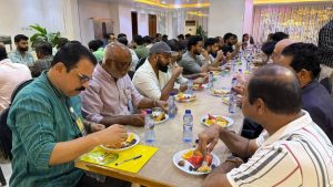 റിയാദ് : മുൻവർഷങ്ങളിൽ എന്ന പോലെ പയ്യന്നൂർ സൗഹൃദ വേദി, റിയാദ് പുണ്യ മാസമായ റമദാനിലെ ഇഫ്താർ സംഗമം , ആദ്യ ദിനത്തിൽ തന്നെ മലാസ് ചെറീസ് റസ്റ്റ്‌റ്റോറന്റ് ഹാളിൽ വച്ച് സംഘടിപ്പിച്ചു. സാംസ്‌കാരിക ചടങ്ങിൽ ജനറൽ സെക്രട്ടറി സിറാജ് തിഡിൽ സ്വാഗതവും, പ്രസിഡന്റ്‌ സനൂപ് കുമാർ അധ്യക്ഷത വഹിക്കുകയും ചെയ്തു. മാസ്റ്റർ മുഹമ്മദ്‌ സിനാൻ ഖുറാൻ പാരായണം നടത്തിയ ചടങ്ങിൽ സൗദി ഇസ്ലാഹി സെന്റർ പ്രബോധകൻ സെയിദ് സുലൈമി റമദാൻ സന്ദേശം നൽകി. പി. എസ്. വി മുഖ്യഉപദേശക സമിതി അംഗം അബ്ദുൽ മജീദ്, പ്രവാസി ഭാരതീയ പുരസ്‌കാരജേതാവ് ശിഹാബ് കൊട്ടുകാട്, ഷക്കീർ വണ്ടൂർ (വാവ), ഡോക്ടർ. രാമചന്ദ്രൻ, ഷാജു ജോർജ്, വിജയൻ നെയ്യാറ്റിൻകര, ജിയോ ജോർജ് പത്തനംതിട്ട, ശംഷു പെരുമ്പട്ട, ഹുസൈൻ അലി കണ്ണൂർ, തൊമ്മിച്ചൻ കുട്ടനാട്, സഫീർ (മിയ), കരീം ചടങ്ങിൽ ആശംസകൾ അറിയിച്ചു. മറ്റു കൂട്ടായ്മകളുമായി പയ്യന്നൂർ സൗഹൃദവേദി, റിയാദ് നടത്തി പോരുന്ന സഹകരണ മനോഭാവത്തെ പൊതുപ്രവർത്തകർ പ്രകീർത്തിക്കുകയും, അവരുടെ അനുഭവങ്ങൾ പങ്കു വച്ച് സംസാരിക്കുകയും ഉണ്ടായി.