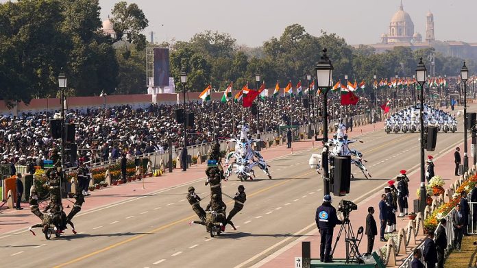 ന്യൂഡല്ഹി: നാളെ നടക്കുന്ന 77-ാമത് റിപ്പബ്ലിക് ദിനാഘോഷത്തിന് ഒരുങ്ങി രാജ്യം. റിപ്പബ്ലിക് ദിന പരേഡിനായുള്ള എല്ലാ സജ്ജീകരണങ്ങളും ദില്ലിയിലെ കര്ത്തവ്യപഥില് പൂര്ത്തിയായി. തിങ്കളാഴ്ച്ച രാവിലെയാണ് പ്രൗഢഗംഭീരമായ ചടങ്ങുകള് നടക്കുക.