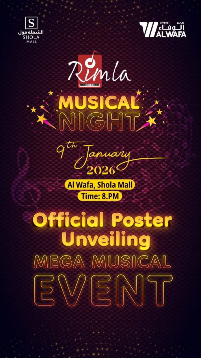 റിയാദിലെ അറിയപ്പെടുന്ന ജീവകാരുണ്ണ്യ-കലാ-സാംസ്കാരിക- സംഗീത കൂട്ടായ്മയായ റിയാദ് ഇന്ത്യൻ മ്യൂസിക് ലവേഴ്സ് അസോസിയേഷൻ്റെ (റിംല ) എട്ടാമത് വാർഷികാഘോഷങ്ങളുടെ ഭാഗമായി ഏപ്രിൽ മാസത്തിൽ പ്രശസ്ത പിന്നണി ഗായകരെ വെച്ചു നടത്തുന്ന സംഗീത പരിപാടിയുടെ പോസ്റ്റർ പ്രകാശനം ജനുവരി 9 ന് വൈകീട്ട് 7 മണിക്ക് മാളിലെ അൽ വഫ ഓഡിറ്റോറിയത്തിൽ വെച്ചു നടത്തുന്നു.