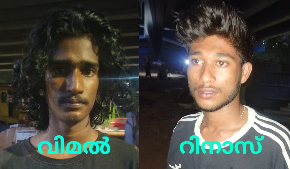 കോഴിക്കോട് : ഹൈലൈറ്റ് മാൾ കേന്ദ്രീകരിച്ച് കഞ്ചാവ് വിൽപ്പന നടത്തുന്ന കാട്ടിൽ പീടിക കരിക്കീരി കണ്ടി വിമൽ പി.എസ്, പാലാഴി പുൽപ്പറമ്പിൽ റിനാസ് പി.ടി. എന്നിവരെയാണ് 77 ഗ്രാം കഞ്ചാവുമായി കോഴിക്കോട് സിറ്റി ഡാൻ സാഫ് സംഘവും എസ് ഐ നിധിന്റെ നേതൃത്വത്തിലുള്ള പന്തിരങ്കാവ് പോലീസും ചേർന്ന് പിടികൂടിയത്.