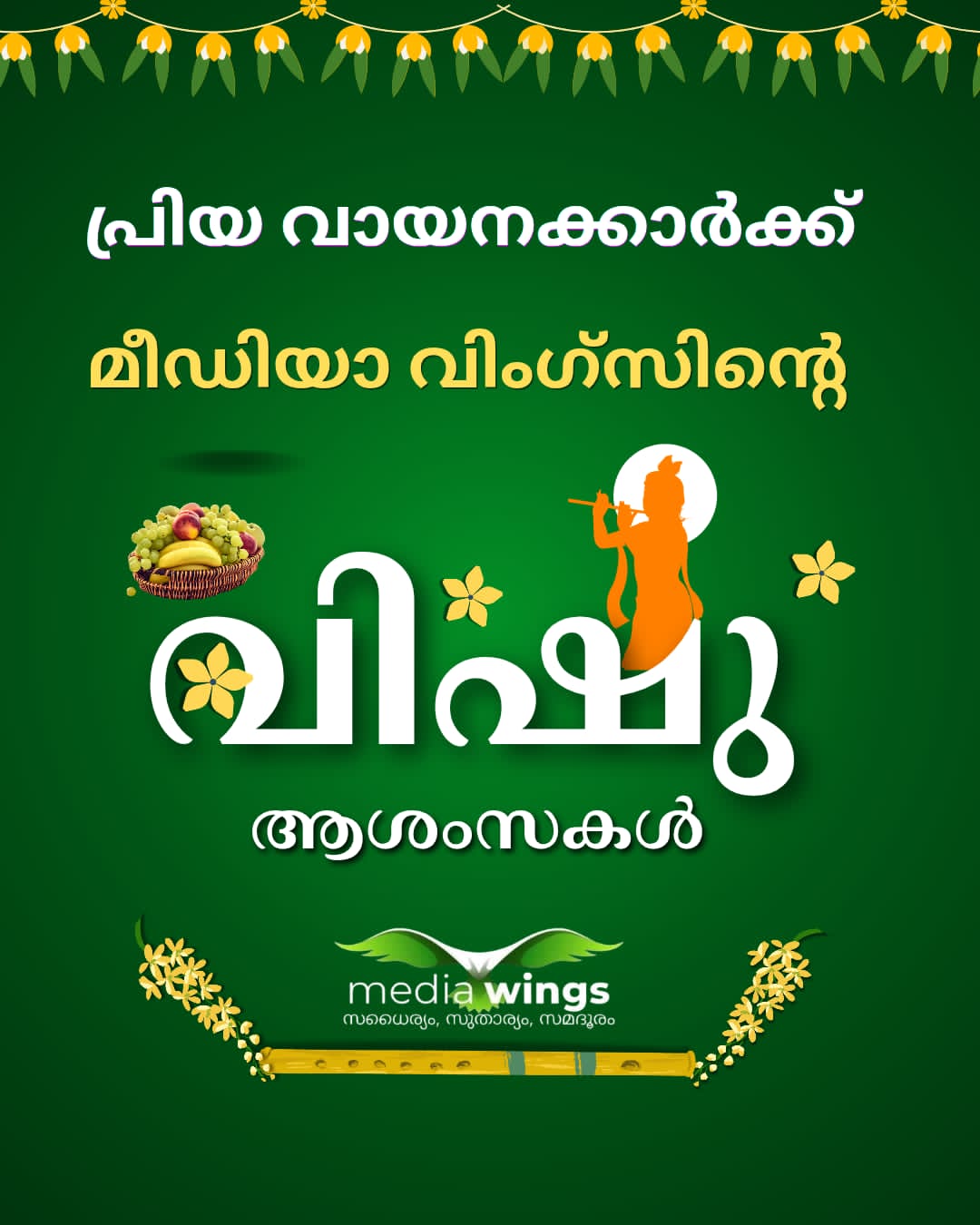സ്നേഹത്തിന്റെയും സമൃദ്ധിയുടെയും ഈ വിഷുപ്പുലരിയില് ഏവർക്കും മീഡിയ വിങ്സ് ഹൃദയം നിറഞ്ഞ വിഷു ആശംസകള് നേരുന്നു.